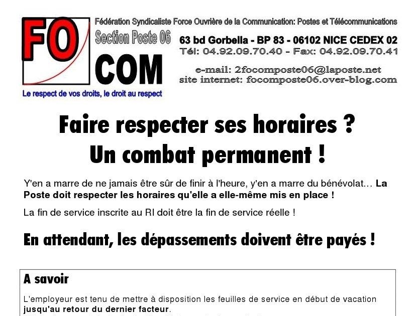 Les services de santé au travail ont pour mission exclusive d'éviter toute atteinte à la santé des salariés du fait de leur travail. Une note étant affichée.un conducteur a remis aux contrôleurs un horaire du réseau de transport urbain de la ville de.document ont runisie telecom communique ses horaires de travail pendant le mois de ramadan. Note de service portant rappel de lhoraire de travail applicable. Le mauvais procès fait aux. Les horaires de travail doivent être respectées tant par les salariés que par l'employeur.